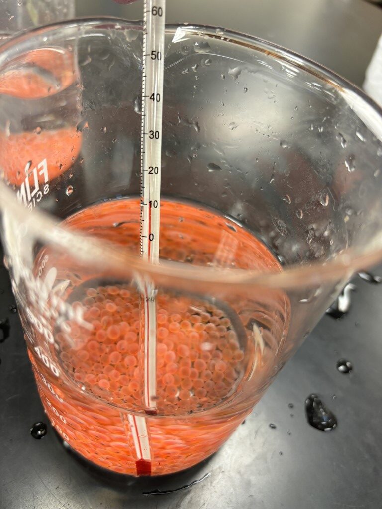Upon arrival at school, eggs undergo three key steps: tempering, counting, and placement in tanks. Tempering prevents temperature shock—a critical concern when eggs are significantly cooler than the tank water. Teachers and students begin by adding ice to a beaker of tank water to gradually cool it to match the eggs’ arrival temperature. Once the temperatures align within a few degrees, the eggs are carefully transferred to the beaker. The final step involves slowly adding tank water to bring the temperature back to the tank’s setting, typically around 52 degrees Fahrenheit.