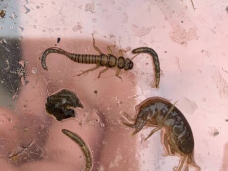 Scuds are freshwater shrimp (bottom right) – a crustacean that lives among benthic invertebrates in the stream.