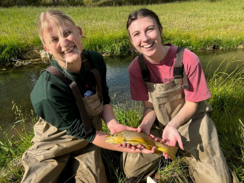 Students from Winona State University sampled an adult brown trout during an electrofishing survey. Win-Cres chapter member plants trees at Cedar Valley Creek in May 2024.