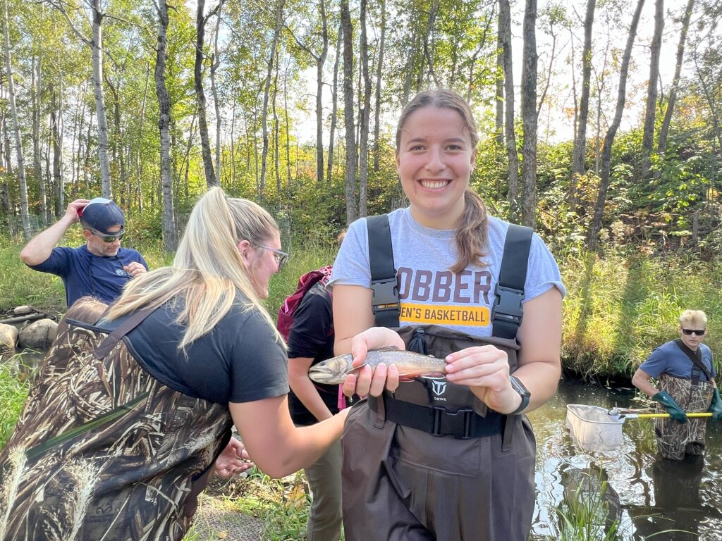 Students from Concordia College visit Keene Creek and learn about the importance of replacing barrier culverts to improve fish passage for wild and native brook trout in rivers along the North Shore of Minnesota. The undergraduates also electrofished in Keene Creek, above the new culvert that re-established passage to over 1.5 miles of habitat to wild brook trout.