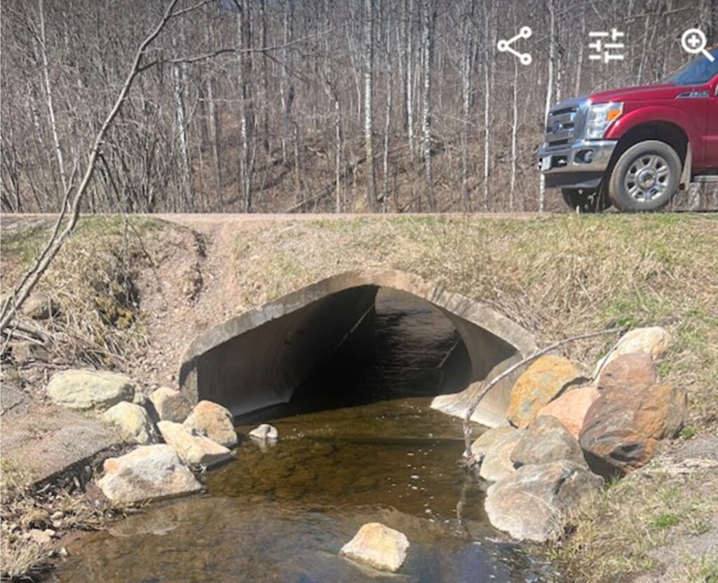 MNTU partnered with the City of Hermantown to replace an undersized barrier culvert on Keene Creek at Okerstrom Road with a properly sized pre-cast concrete arch culvert with headwall and wingwalls, reconnecting wild brook trout with 8,300-ft of habitat. This new passage connects two previous MNTU in-stream projects above and below the crossing, and the installation included a new cross vein to maintain depth of the pool below the culvert, added toewood and boulders within the pool, riffle substrate throughout the culvert, and the planting of dozens of native trees, including white pine, white spruce, and white cedar along the stream edge.